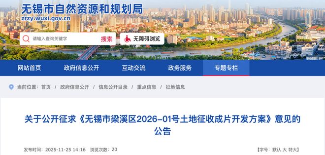 11月25日,无锡市自然资源和规划局在网站公布了梁溪科技城发展规划。关于公开征求《无锡市梁溪区征地发展规划2026-01号》辖区基本信息意见的公告。本规划主要涉及无锡市梁溪区湛江街道,共1个片区,湛江街道朝阳西片区,片区总面积11.7931公顷(开发范围以最终批复为准)。该地区是一个新城区。辖区公益性用地6.2046公顷,占土地总面积52.61%,公益性用地比例至少40%。土地面积及开发区域范围:湛江街道朝阳西片区土地面积(CP320213-2026-01-02)11.7931公顷。四界,东有洞庭河,南有苏小河,豫西至元路,北至北滨路。实施方案 本规划整个开发范围内拟建设项目的土地征用工作计划在5年内分批启动。需求及效益分析 梁溪科技城位于无锡市三区(梁溪区、惠山区、锡山区)交界处。土地完成率高达76%。粗放式开发初期,土地节约集约利用水平较低。目前,现有建设用地主要是旧厂房、旧住宅和城中村,新增土地紧缺。面向公众的公共服务水平低,服务设施街道、社区公共服务不足,设施供给难以满足服务人口不断增长的需求。鉴于上述目前的专业面对这些问题,梁西科技城全面更新蓄势待发,旨在突破城市发展瓶颈,改善人居环境,从粗放式发展向高质量发展转变。通过综合开发项目建设,推动配套区域的基础设施和公共设施完善,加强梁西区公共服务设施的区域辐射。业态植入和商业建设有利于解决民生设施落后问题,促进周边老旧社区功能完善、空间挖潜、服务提升,把分散的老旧社区串联起来,形成安全、便捷、绿色、清洁、有序、美丽的生活社区,将显着增强城市居民的获得感、幸福感、安全感。,同时激发城市的发展潜力。无锡市梁溪区征地开发规划2026-01号(征求意见稿) 编辑:蔚来 编辑:何白 校对:肖阮 编辑:朱艳 来源:江南晚报综合 无锡市自然资源和规划局网站