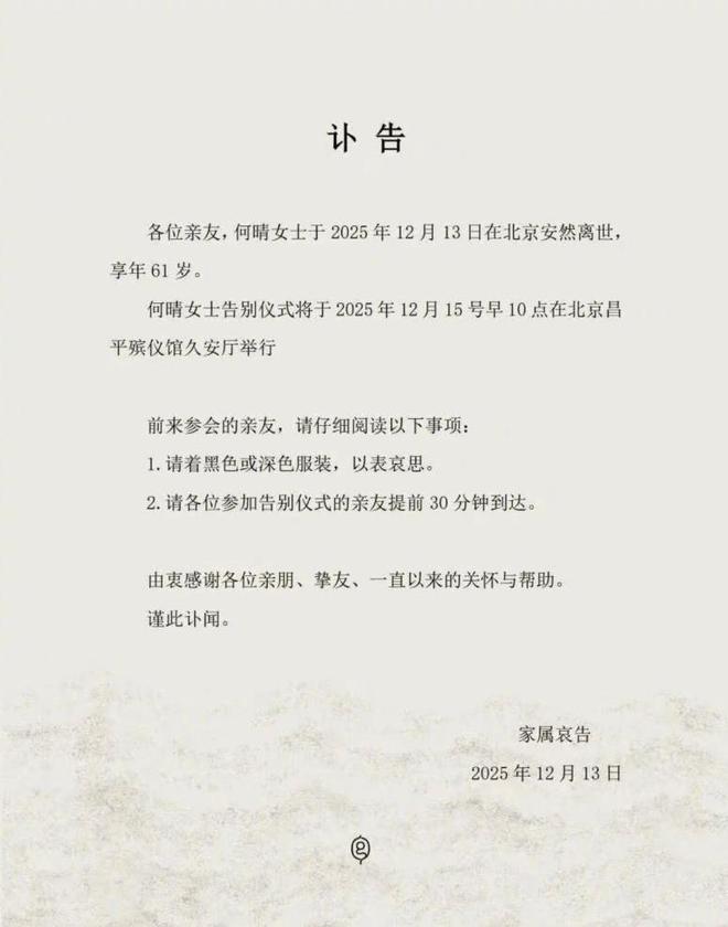2025年12月13日,演员何晴去世的消息震惊了娱乐圈所有人。不料61岁时他就去世了。何晴并不是一个非常暴露的女演员,但她的美貌却让人第一眼就惊艳。她是内地唯一一位在四大经典中扮演古装美女的女演员,至今无人能及。他是1986年版《西游记》中的连连,1989年电影版《红楼梦》中的秦可卿,也是央视《三国演义》中饰演小乔的演员。但最让大众印象深刻的还是1998年央视《水浒传》中温柔美丽的李施施,年轻时的何晴颜值堪称娱乐圈顶级美女。出生于浙江衢州,毕业于浙江歌剧团。 19岁那年,他通过主演《少林居士》正式进入演艺圈。一年后来,《西游记》导演杨洁看到了她,饰演了可爱呆萌的莲莲,也通过在四部热门小说中扮演美人开始了她的成神之旅。娱乐圈里美女不少,但像何晴这样漂亮的却并不多。加上江南女子特有的知性和彬彬有礼,她的身边也不乏追求者。然而,何晴对于爱情却是热情而执着的。他敢爱敢恨,留下两段炽热的爱情。 1989年,何晴参加《少女别动队》,认识了比她大6岁的演员刘伟。当时,刘伟和k被业界公认为“硬汉”。何晴迷恋刘伟任性的性格,两人在拍摄结束前坠入爱河。 1994年中央电视台元宵晚会上,他们一起表演了《元宵节的北京城》,让旁人羡慕他们的炽热爱情。这段感情持续了5年也是何晴公开的第一段恋情。 1995年,何晴在拍摄电影《风与莲》时结识了演员徐亚军。两人因戏相爱,甚至不顾世俗道德的界限。当时,许亚军已经经历了离婚。他仍与第二任妻子张曦结婚,但仍与何晴保持着热烈的恋情。许亚军与妻子摊牌,最终与第二任妻子离婚。离婚后,皮娜克赶紧许亚军对待何晴。两人都算是岩霸选手,长相确实很般配。 2001年,何晴怀孕了。许亚军当时很高兴。何晴怀六甲的时候,许亚军把自己的肚子贴在他的肚子上,听宝宝的胎动。隔着屏幕都能感受到两人的幸福。我以为这种打破道德底线的关系会让他们双方都更加坚强。没想到这段婚姻却以他们的孩子出生后第二年。离婚的原因是何晴无法接受自己背弃了孩子和家庭。每当许亚军出去拍戏,留下何晴一个人照顾孩子时,何晴都感到无助,无法接受这样的生活,于是何晴选择离婚。但离婚后,两人的关系并没有变得紧张。相反,何晴这些年来不仅与许亚军保持着良好的关系,而且与许亚军已经再婚的妻子也保持着良好的关系。她的儿子和继母的关系也很好。他们的儿子徐赫由徐亚军抚养长大。徐鹤2023年毕业于中戏表演系,长得也很漂亮,长得也很帅。 2006年,在拍摄《谁是我爸爸》的过程中,何晴遇到了那个陪她走到生命尽头的男人——廖京生。虽然两人在荧幕上只是一对夫妻,但观众却一直误以为他们是真正的情侣。廖京生本人也曾辟谣,称两人只是好朋友,并非恋人。 2005年何庆患病后,廖京生多次去看望他。也得到好心人士证实,何晴的好友黄绮珊表示,在何晴与癌症抗争的过程中,陪伴在她身边的都是像他们这样的家人和老朋友。廖老师只是偶尔过来送饭,连饭都不吃。或许这正是观众对两人感情的期待,但何晴并没有第二任妻子。这个人已经死了。希望何晴不要再得天病了。