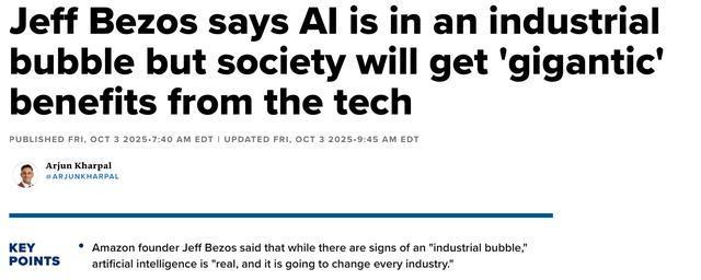 资料来源:全球网络[全球网络财务综合报告]根据CNBC等外国媒体报告,亚马逊创始人杰夫·贝佐斯(Jeff Bezos)在他的最新公共活动中说,当前对人工智能领域(AI)的投资应被视为“好泡沫”。尽管最终在2000年在互联网上像泡沫一样爆炸,但它将带来巨大的长期社会利益。这位巨型技术强调,AI繁荣和纯净的金融泡沫之间存在着重要的区别,这与促进互联网和生物技术发展的工业革命期间的投资浪潮更相似。 。他说,当亚马逊的股价在短时间内从113美元下降到6美元时,这导致了市场恐慌,公司的实际业务仍然很强劲,而股票的价格是从业务条件来看的“票房”。关于当前的AI投资繁荣,Bezos承认,即使投资者很难区分“来自坏主意的好主意”,几乎导致所有获得融资的项目,“人工智能都是真实的,它将改变每个行业”,“我们不知道要实现多长时间,但它存在。”在同一事件中,高盛首席执行官戴维·所罗门(David Solomon)从华尔街的角度表达了更仔细的景色。尽管他认识到AI提高生产率的巨大潜力,但他说这是“ Kapana兴趣”,并预测“世界各地的所有工作和业务都可以通过AI改变”,但他还警告说,目前涌入AI领域的大量资本最终可能无法获得预期的回报。所罗门特别强调,他“不够聪明,无法知道”,如果目前的市场是由泡沫形成的,并在1998年以市场状况为例:人们还记得当时的泡沫问题,但此后市场持续了三年。投资银行的负责人说:“我们正处于电影的开头,而不是结局...如果我们在接下来的12到24个月内看到股票市场的回调,我不会感到惊讶,但是毫不奇怪,我们经历的趋势并不奇怪。“值得注意的是,两个行业领导者都对AI技术开发的长期前景开放。Bezosbezos提到AI Boom作为“工业气泡”,而不是“爆炸”,即使是一个重要的爆发,即使他们逃脱了,他们就会逃脱了,他们的爆炸率是escloy的,这些爆发了,这些爆炸性的是逃避了一个爆炸的效果。 Theai是“ Kapana -Excellent”,但要注意当前投资繁荣的潜在风险。